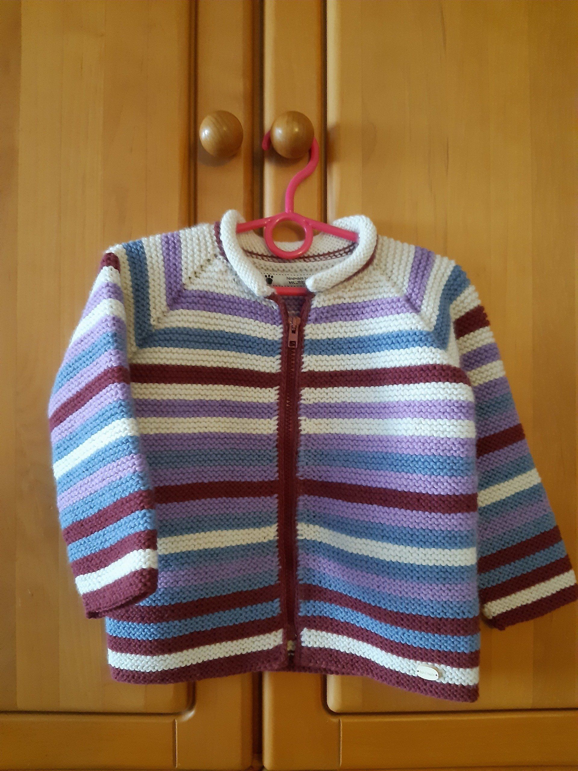 Und dann sind noch zahlreiche Ringel- und Streifenjacken und -pullis entstanden aus dem Wunsch heraus, vorhandene Wolle bis auf den "letzten" Zentimeter zu verwerten... Derzeit arbeite ich noch an eher dickerer Herbst- und Winterwolle, kann es aber kaum erwarten, mich an meinen Baumwoll-Vorräten "auszutoben".