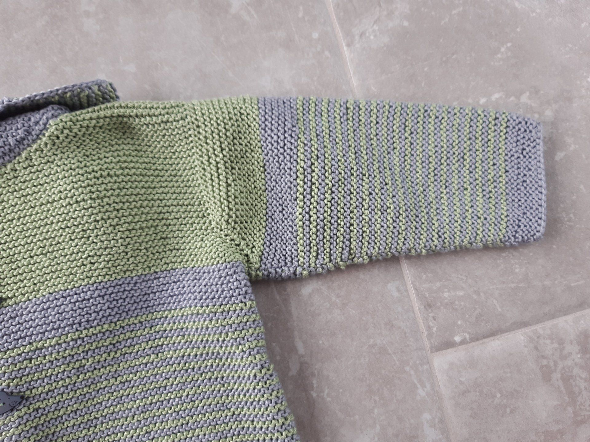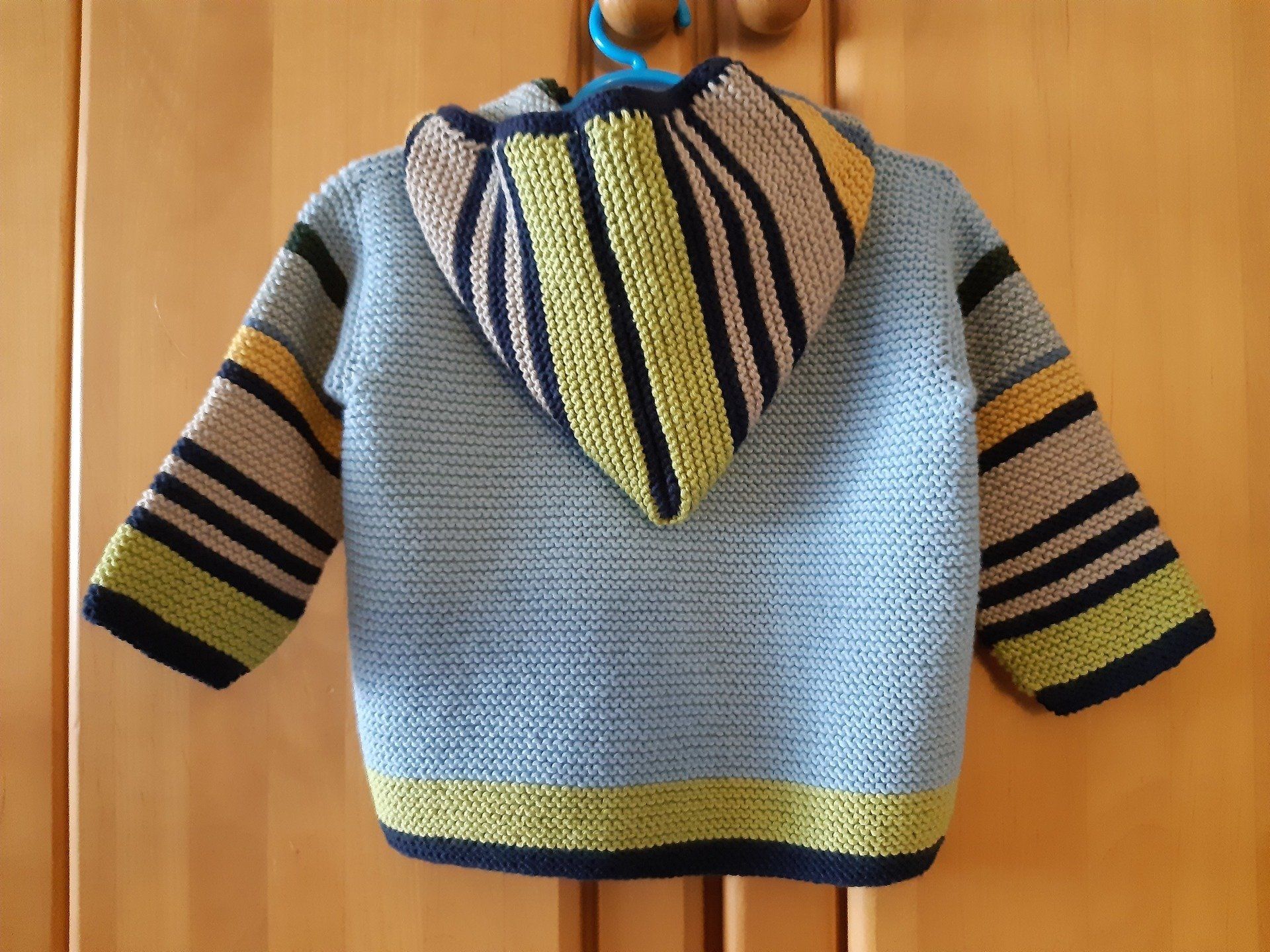 Zwischendurch wollte ich mal wieder meiner besonderen Vorliebe für geringelte Jacken frönen (Zum Teil sind es nur Werkstattbilder, aber so kann man auch gleich die Fertigungsweise sehen). Die graue Kapuzenjacke ist eine Bestellung:
