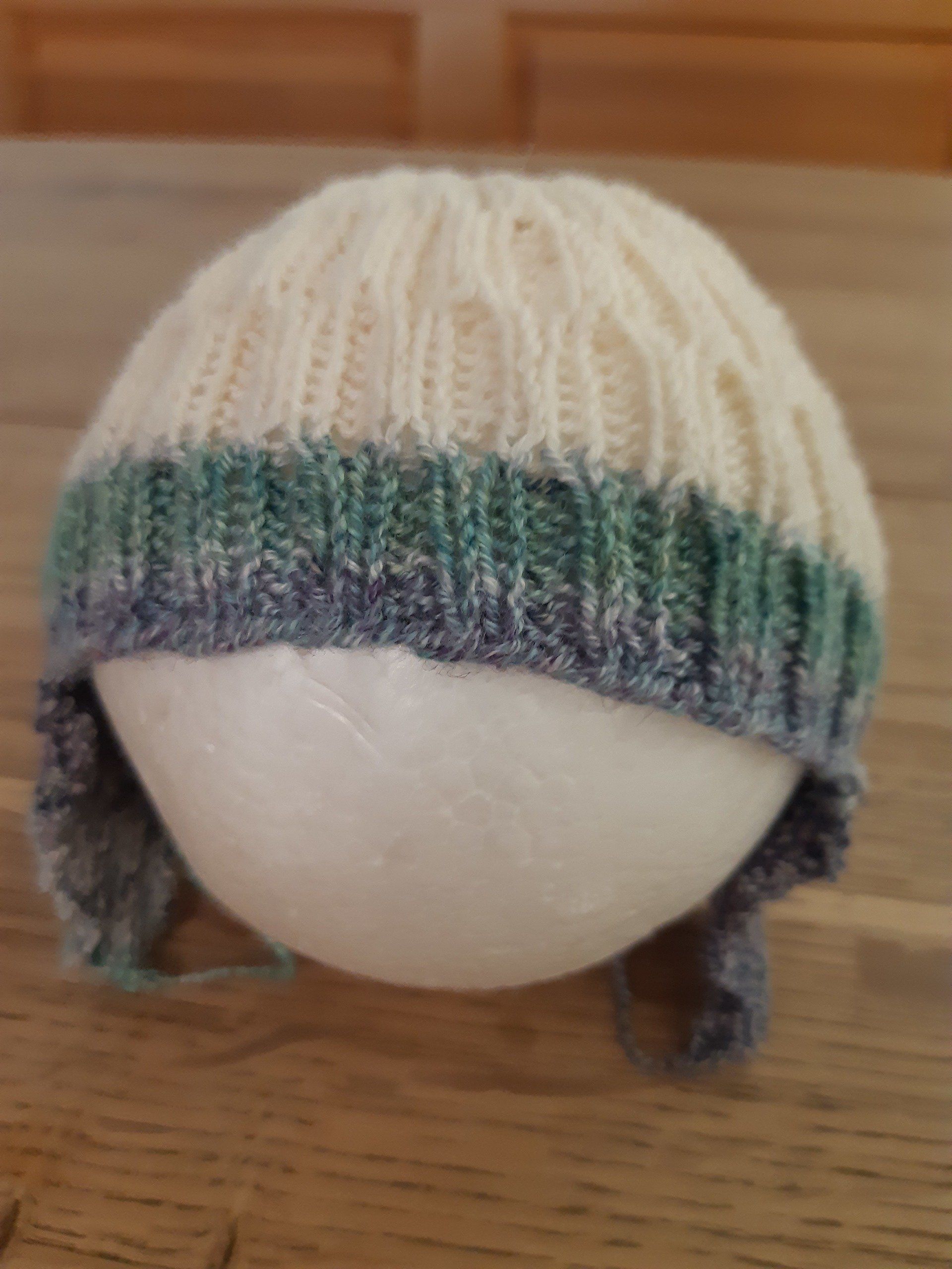 So ist die folgende Babymütze mit Ohrenschützern entstanden, die bereits mehrfach erfolgreich im Einsatz ist (leider kein Bild mehr rechtzeitig gemacht -also ohne Baby-). Sie ist eine abgeänderte und weiterentwickelte Form des „Shoots-n-Ladders Hat“ von Ainur Berkimbayeva: Strickanleitungen auf Englisch für das Original gibt es bei www.lovecrafts.de oder www.ravelry.com.