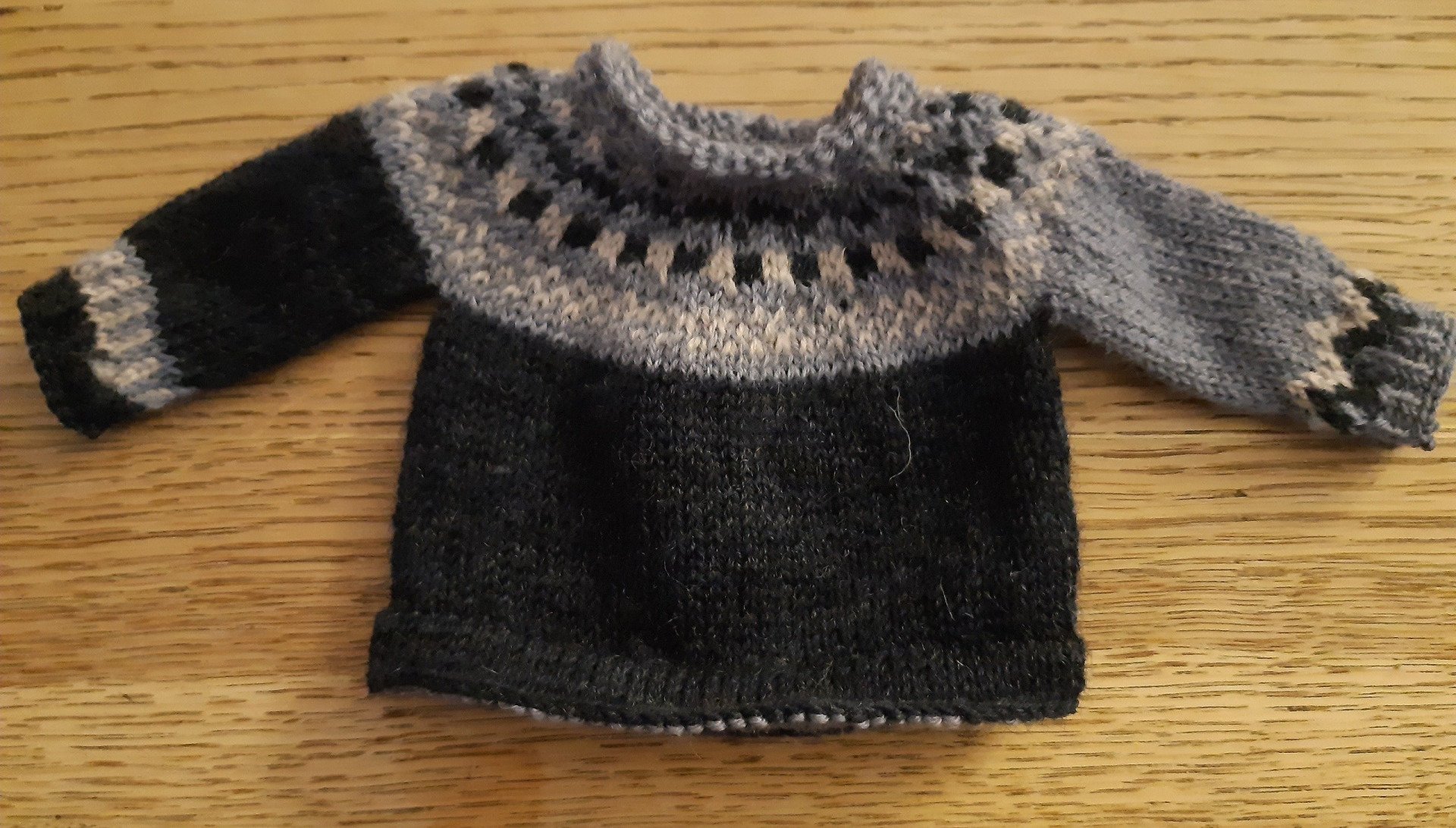 Inzwischen ist auch schon ein Teil der Aufträge fertiggestellt. Etwas länger werde ich noch an den grauen Norweger-Pulli hinarbeiten müssen, aber bis Weihnachten sollte auch der erledigt sein. Im Laufe des Wochenendes habe ich mich überreden lassen, mich von drei Erwachsenen-Musterpullis zu trennen (Isländer bunt, Ringelpulli bunt und Aranpulli, siehe Bild), weil die Kundinnen jeweils perfekt zu ihnen gepasst haben! So weiß ich die Teile in wirklich passenden/guten Händen und werde mir bis Oktober 2023 neue Entwürfe überlegen.