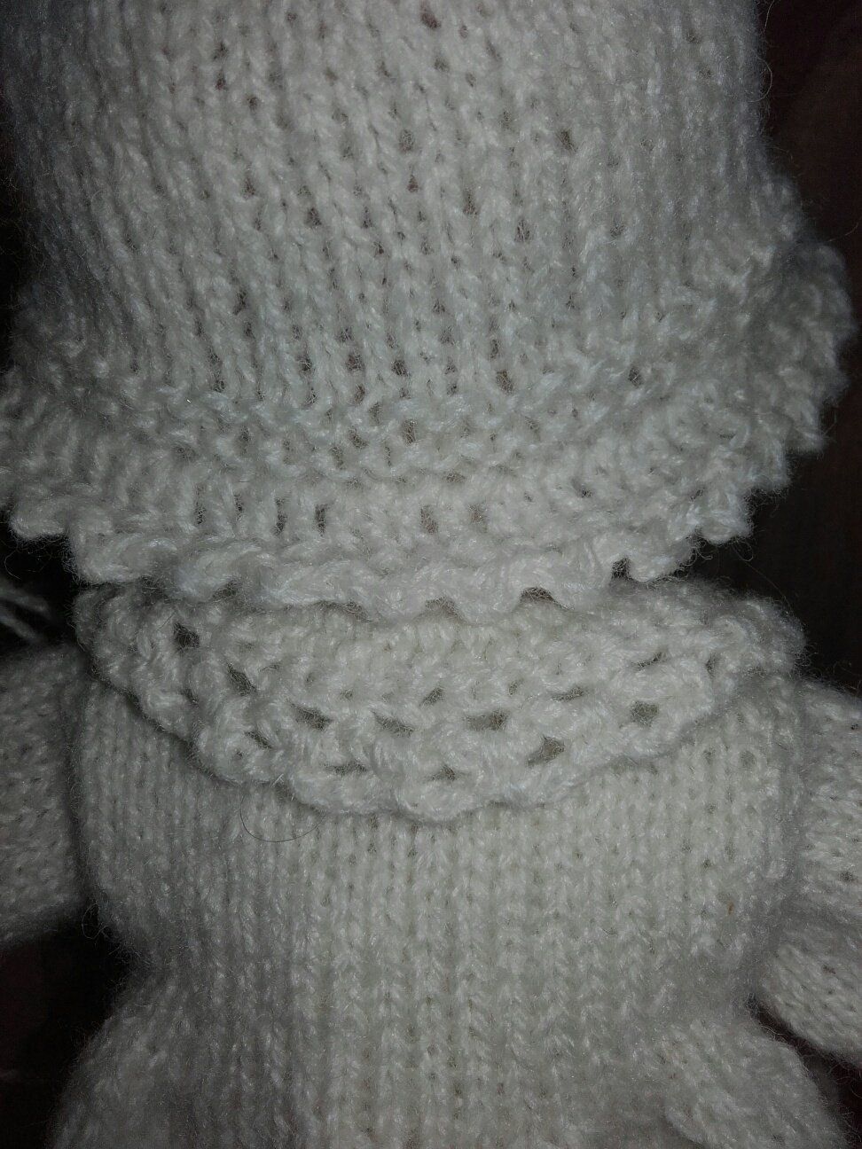 Eine echte Herausforderung war das kleinste Holzpuppenmodell der Familie Pongratz, 15cm und doch alles dran und genauso beweglich, wie die großen Puppen. Das Kleidchen ist aus 100% Angora-Wolle der Firma "Seidenhasen" (www.seidenhase.de) von glücklichen Hasen aus Thüringen ;) Die Wolle ist einfach ein Traum! Das alte Modell wurde mit einer anderen Nadelstärke und Handstrickmaschine gestrickt (habe ich aber nicht!):