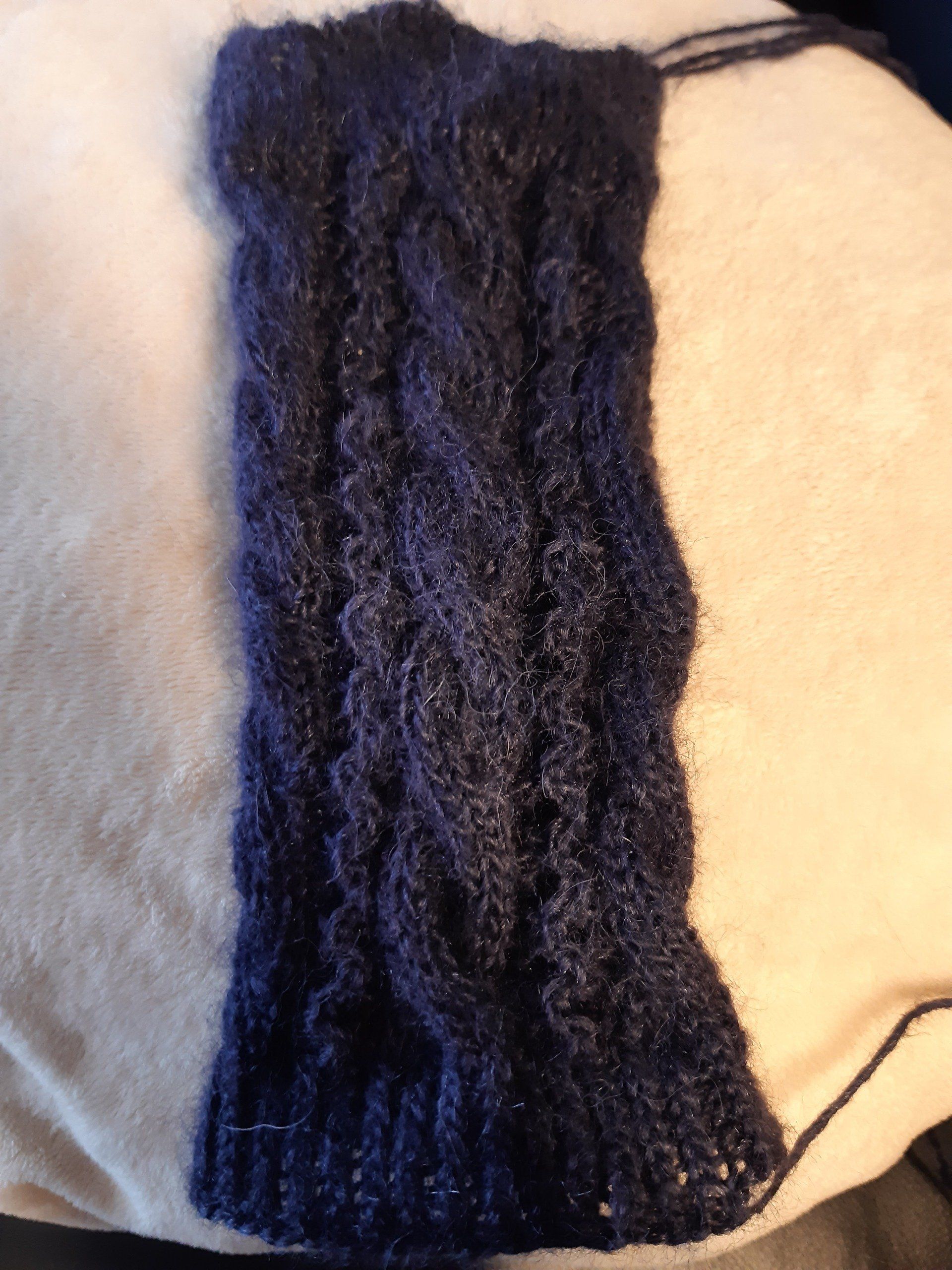 Prinzipiell ist alles möglich, aber eine Herausforderung ist es schon, maschinengestrickte Teile "nachzuarbeiten"... bei den Stulpen war das Zickzackmuster zum Beispiel einreihig im Musterwechsel und -verlauf, was die Auf- und Abnahmen etwas fummelig gemacht haben. Es gab dann auch ein Paar in neu und einen ungefähr gleichen Stulpen zusätzlich, denn die Farbe und das Material genau zu treffen, ist fast nicht möglich. Verwendet wurde Lana Grossa "Lace Seta", ein wundervolles Garn aus 40%Merino 35%Seide 20%Baby-Alpaca und 5%Viscose (zu Lana Grossa: www.lanagrossa.de).