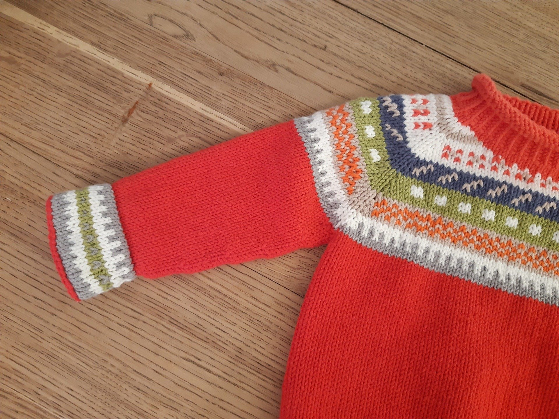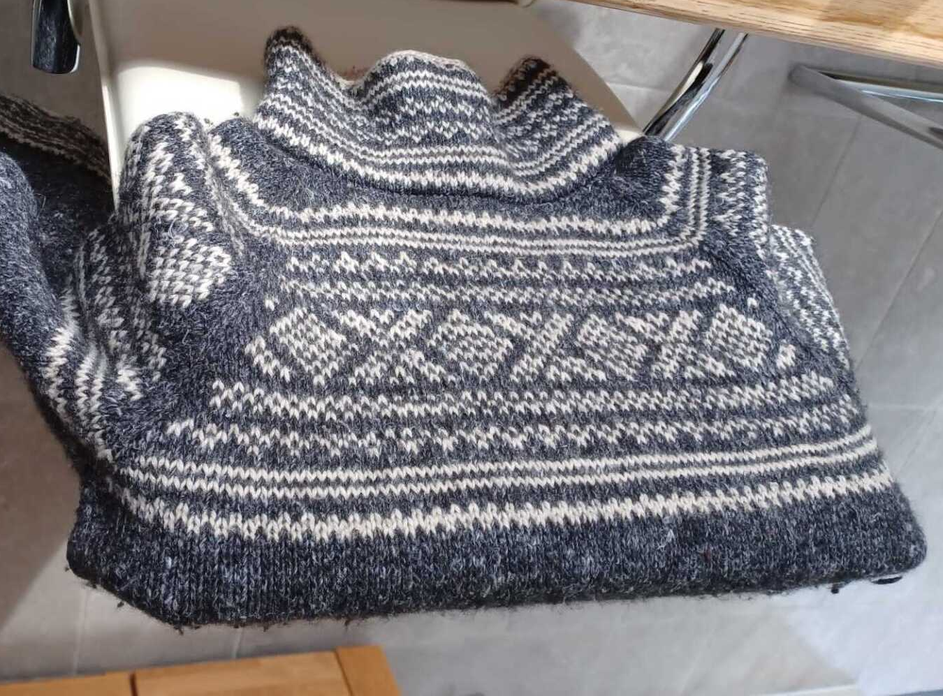 Inzwischen ist auch schon ein Teil der Aufträge fertiggestellt. Etwas länger werde ich noch an den grauen Norweger-Pulli hinarbeiten müssen, aber bis Weihnachten sollte auch der erledigt sein. Im Laufe des Wochenendes habe ich mich überreden lassen, mich von drei Erwachsenen-Musterpullis zu trennen (Isländer bunt, Ringelpulli bunt und Aranpulli, siehe Bild), weil die Kundinnen jeweils perfekt zu ihnen gepasst haben! So weiß ich die Teile in wirklich passenden/guten Händen und werde mir bis Oktober 2023 neue Entwürfe überlegen.