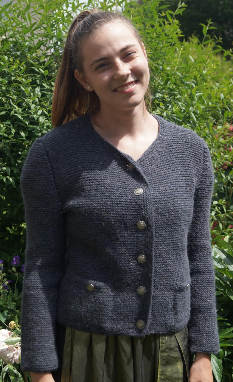 Für den Laden sind noch zwei weitere Trachtenjacken entstanden, die mir persönlich sehr am Herzen liegen: Die Wolle habe ich von einem Besuch aus Rumänien mitgebracht. Die Firma heißt Transilana (www.transilana.ro), stellt Wolle für Kleidung als Konenware her und hatte so eine "Idee" in Pandemiezeiten. Sie produzieren nun Handstrickwolle aus 100% spanischer (mulesingfreier) Merino, die einen gewissen Griff hat und einen perfekten Stand für Trachtenjacken. Sie wollen ihre Palette zunehmend erweitern. Die Wolle ist aber trotzdem genügend weich, dass sie Kinder gut anziehen können...
