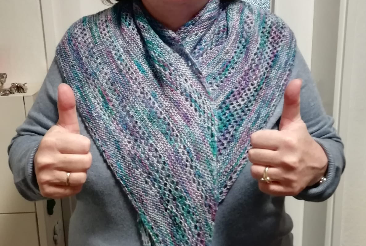 Eine angeheiratete Cousine von mir hat gerade ihre Website fertiggestellt und geht unter anderem mit selbstentworfenen und -gestrickten Schals (ähnlich Drachentüchern) online: