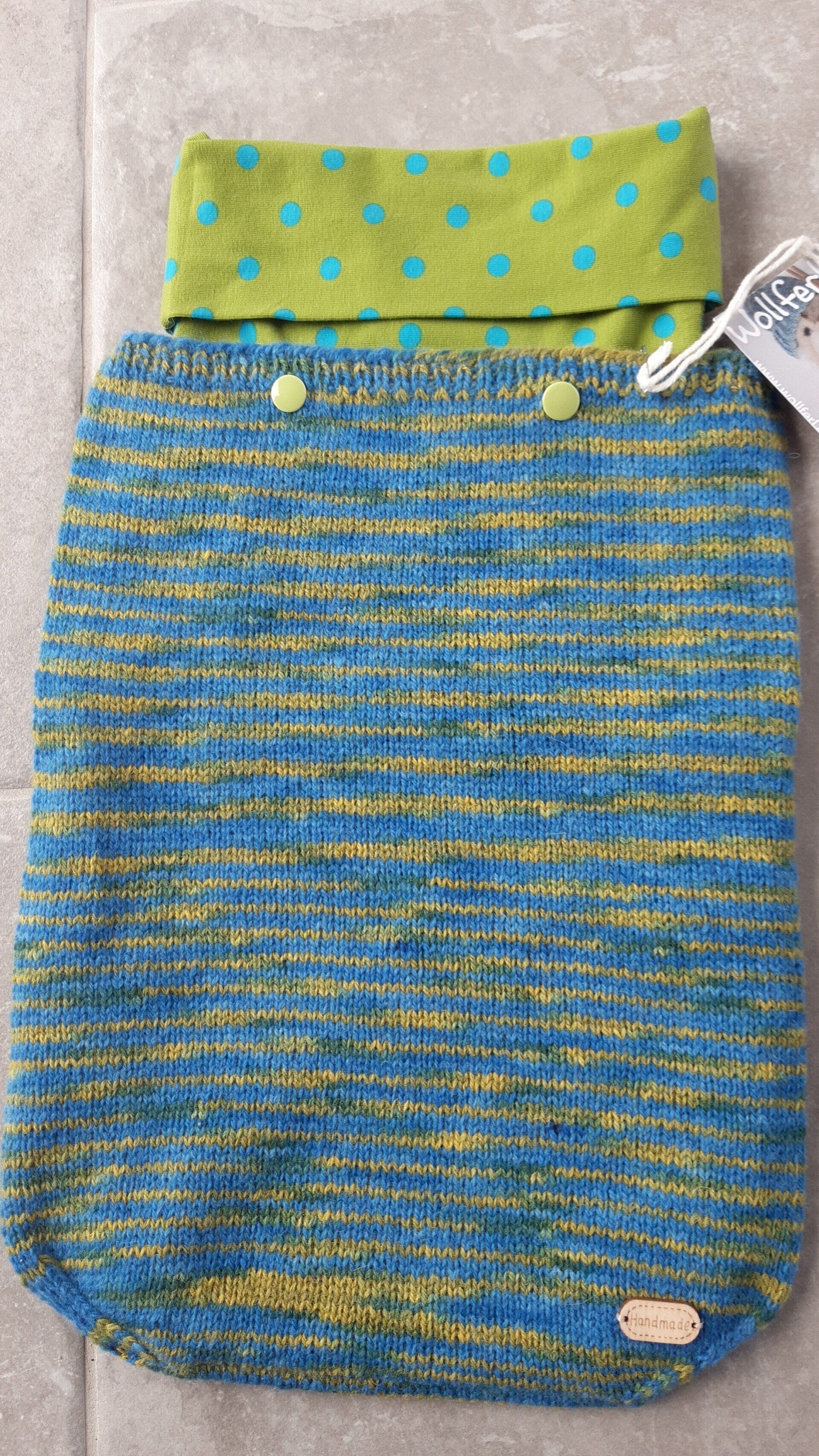 Die Winterpucksäcke sind aus reiner Schurwolle gestrickt und für die feine Babyhaut komplett ausgefüttert mit Baumwolljersey: